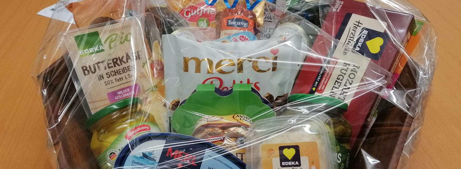 Ob zum Geburtstag, Jubiläum, als Dankeschön oder einfach als kleine Aufmerksamkeit – ein Präsentkorb von EDEKA [Marktname] ist immer eine gute Idee.